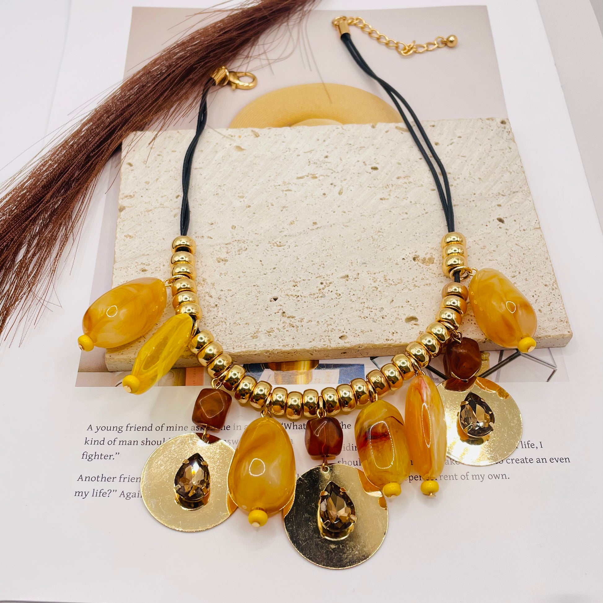 JI JOYA VENTA AL POR MAYOR,Collar colgante de cuentas de cuerda