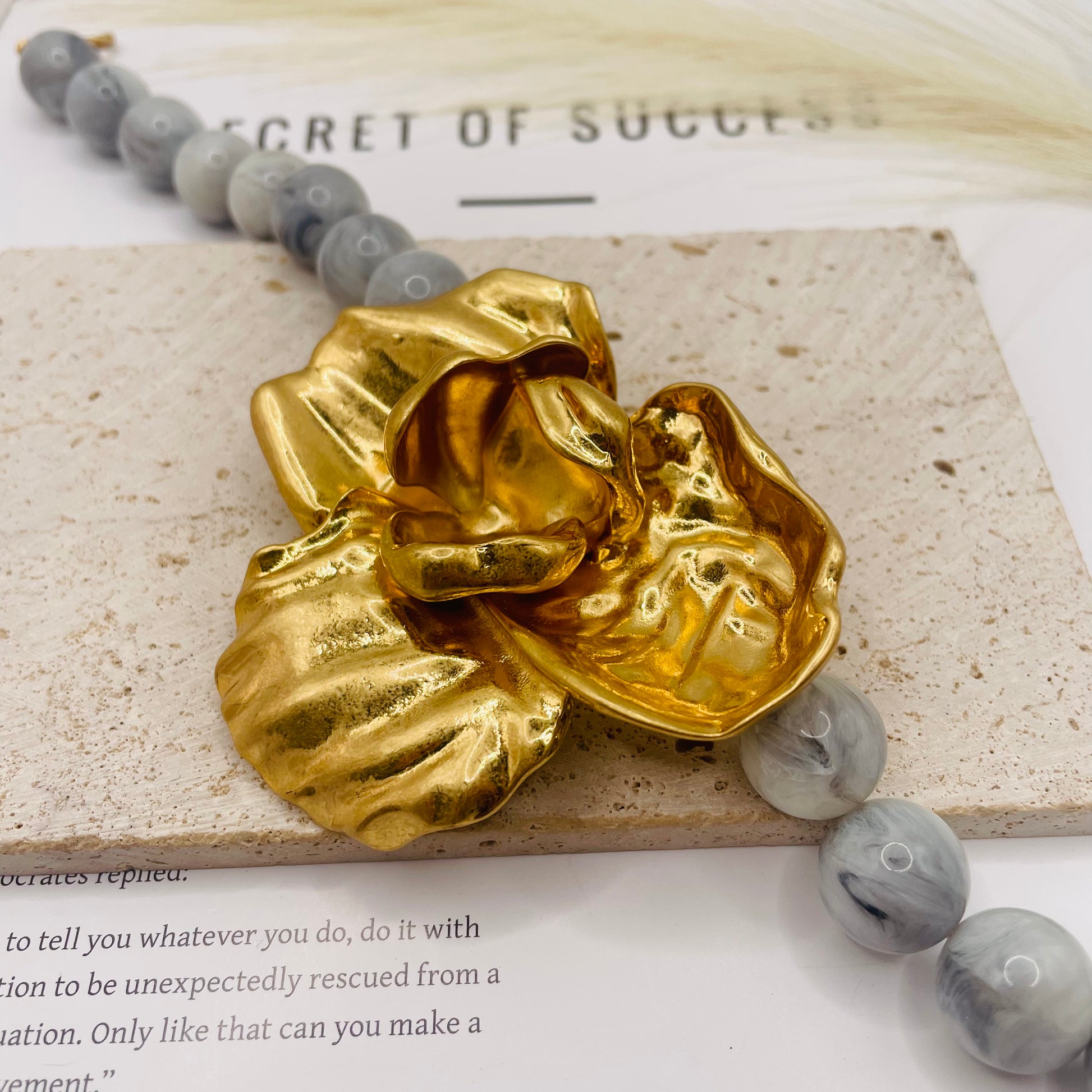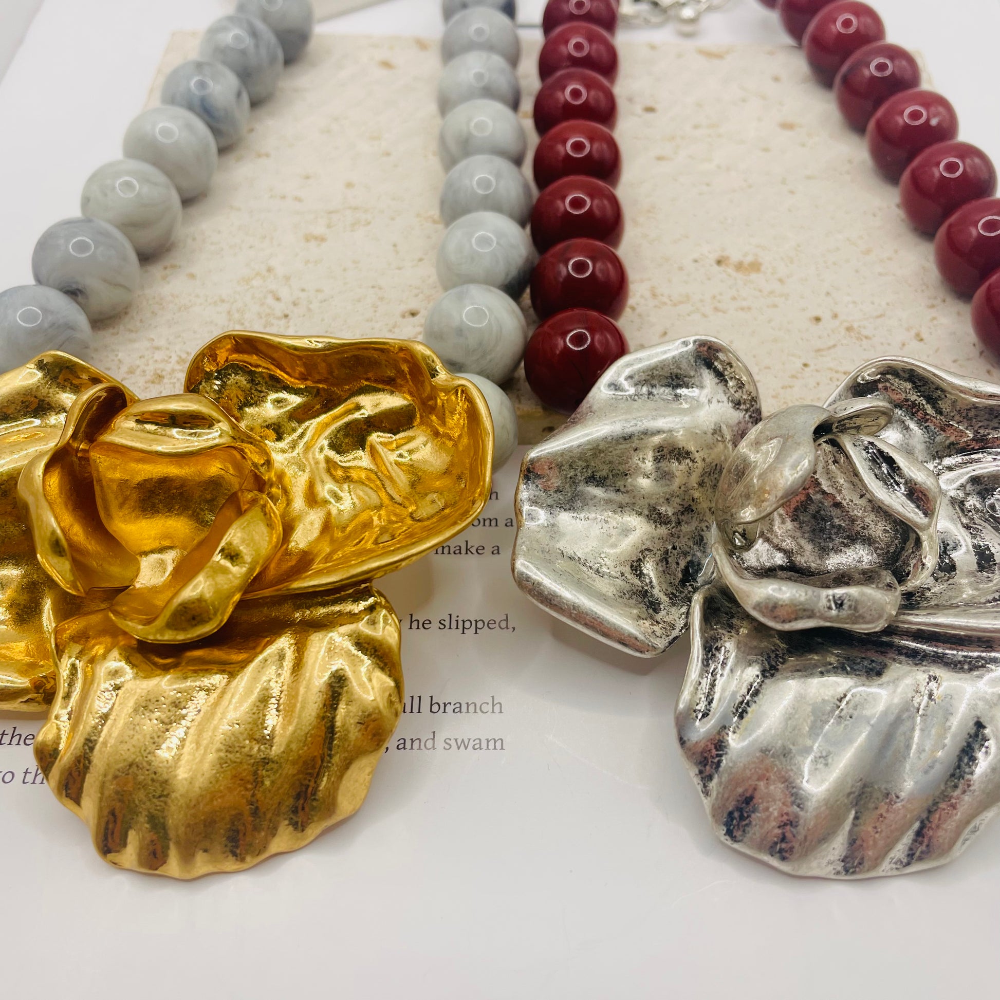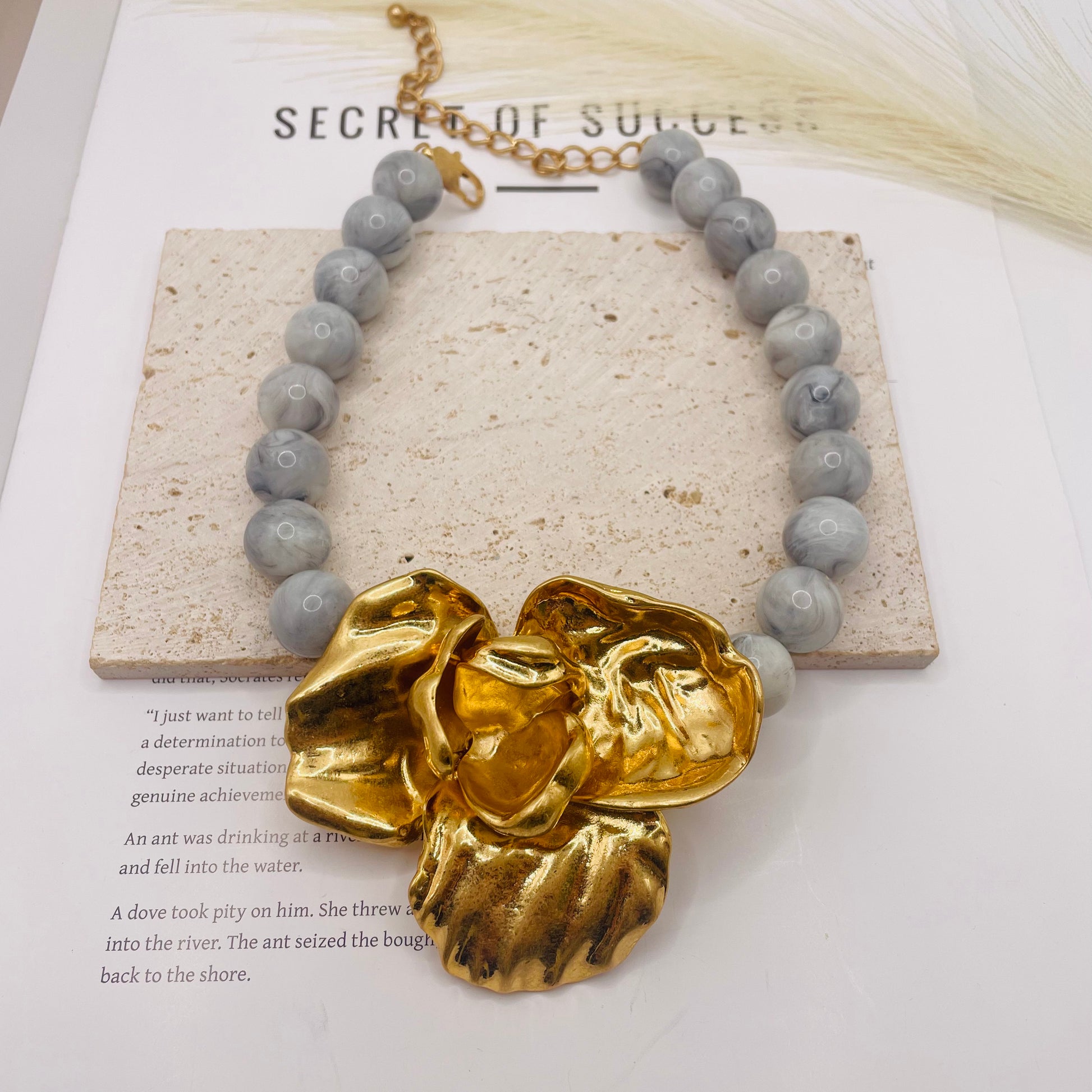 JI JOYA VENTA AL POR MAYOR,¡Grandes flores de moda combinadas con un collar de columna redonda!