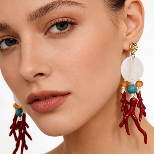 Broche vintage de estrella de mar color coral y naranja | Pin dorado con detalles de perlas -